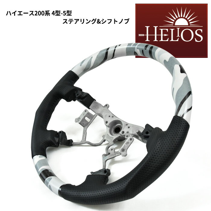 HELIOS 200系 ハイエース 4型 5型 黒白迷彩 ガングリップ ステアリング ホワイト カモフラージュ