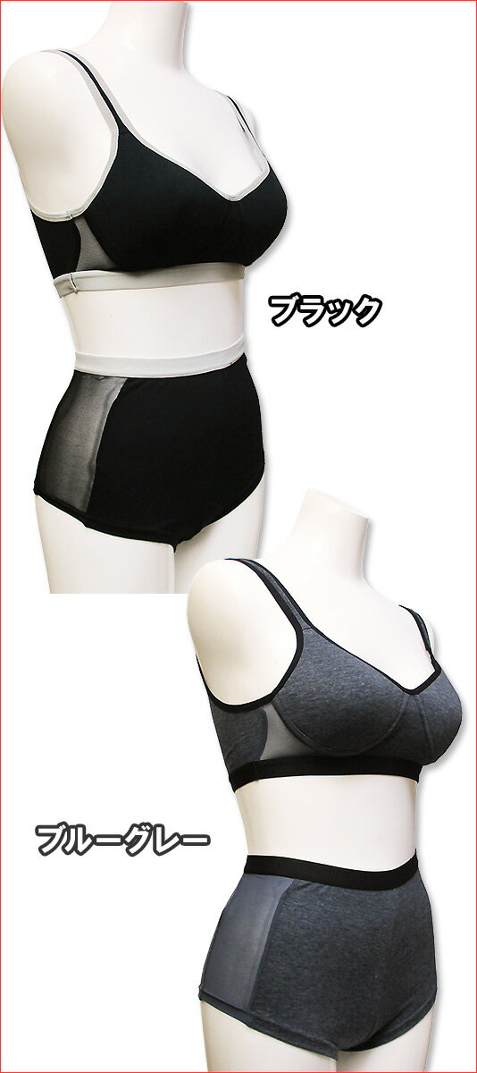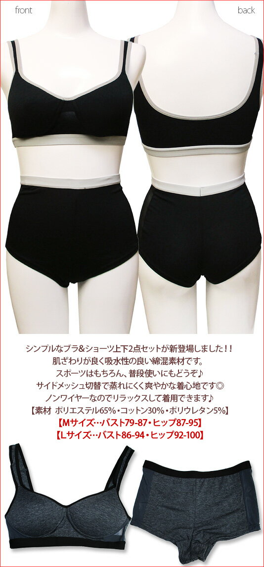 再入荷【綿混】サイドメッシュ切り替えコットン混スポーツブラ&ショーツセット♪蒸れにくくサラッとした肌触りの軽量上下セット♪【レディース・婦人肌着・インナー・ノンワイヤー・ワイヤレス】[春物][夏物][秋物][冬物]