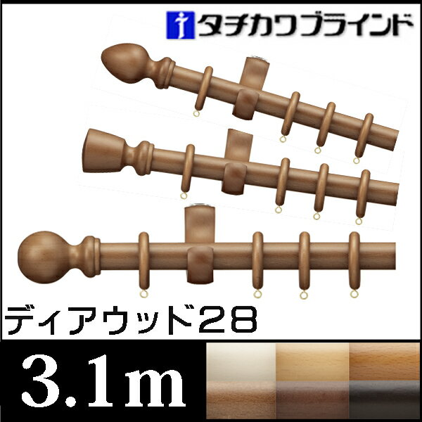 木製 装飾カーテンレール ディアウッド28/フィニアルA・B・Cセット 【3.1m シングル カラー6色】 タチカワブラインド製【メーカー直送品につき代引き不可】